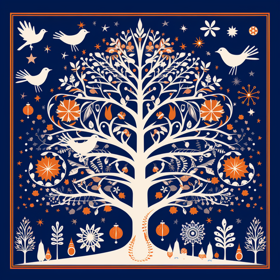 I had a client whose branded colors are a deep burnt orange and a dark navy blue. Reaching out for some holiday creative, I decided to run a generative AI experiment rather than hunting for stock photos and combining them with other pieces as well as altering the coloring to represent their brand. The result was the following above. The range is between hyper-realistic to completely illustrative.